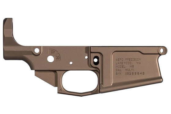Aero Precision APAR600028C M4E1 Low Profile (no logo) Receiver Multi-Caliber Kodiak Brown Anodized Finish 7075-T6 Aluminum Material with Mil-Spec Dimensions for AR-15