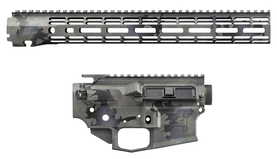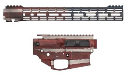 Once a month, Aero Precision offers stylish designed builder sets that include a lower receiver, upper receiver in three configurations (EM, SM and RM) and a handguard in several different lengths (10", 12" and 15") and styles (Enhanced, Split Rail and Full Rail). The quantities are very limited and sell out quickly. These attractive designs are unique and not duplicated after they are offered. The three pieces mate well to provide a distinctive presentation. They also usually offer matching stocks and grips that you may order to complete your custom build.