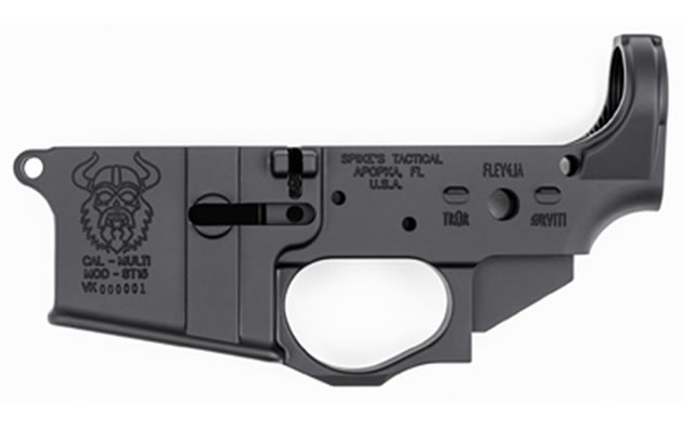 Spike’s STLS910 9MM Spider STRIPPED LOWER RECEIVER, Forged Colt 9MM, Last Round Bolt Hold Open, Bullet Pictogram Selector Markings, 7075 T6 Forged Receiver, MIL-A-8625F Type III Class 2 Hard Coat Anodized Finish, Dedicated Colt Magazine Well, Built in Trigger Guard, Proprietary Parts Included, Oversized Magazine Release Button